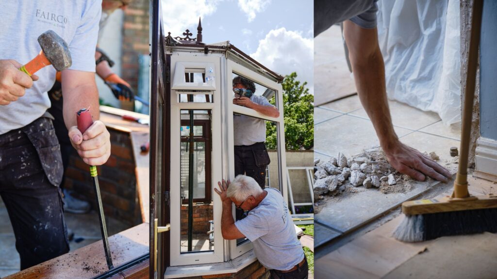 The original conservatory featured dark wood style frames and stained-glass details. While charming in its time, the structure struggled to keep up with modern living needs. Seasonal extremes meant it was too cold in winter and uncomfortably warm in summer. The ageing frames required regular upkeep, and the glazing no longer offered the insulation or noise reduction homeowners now expect.